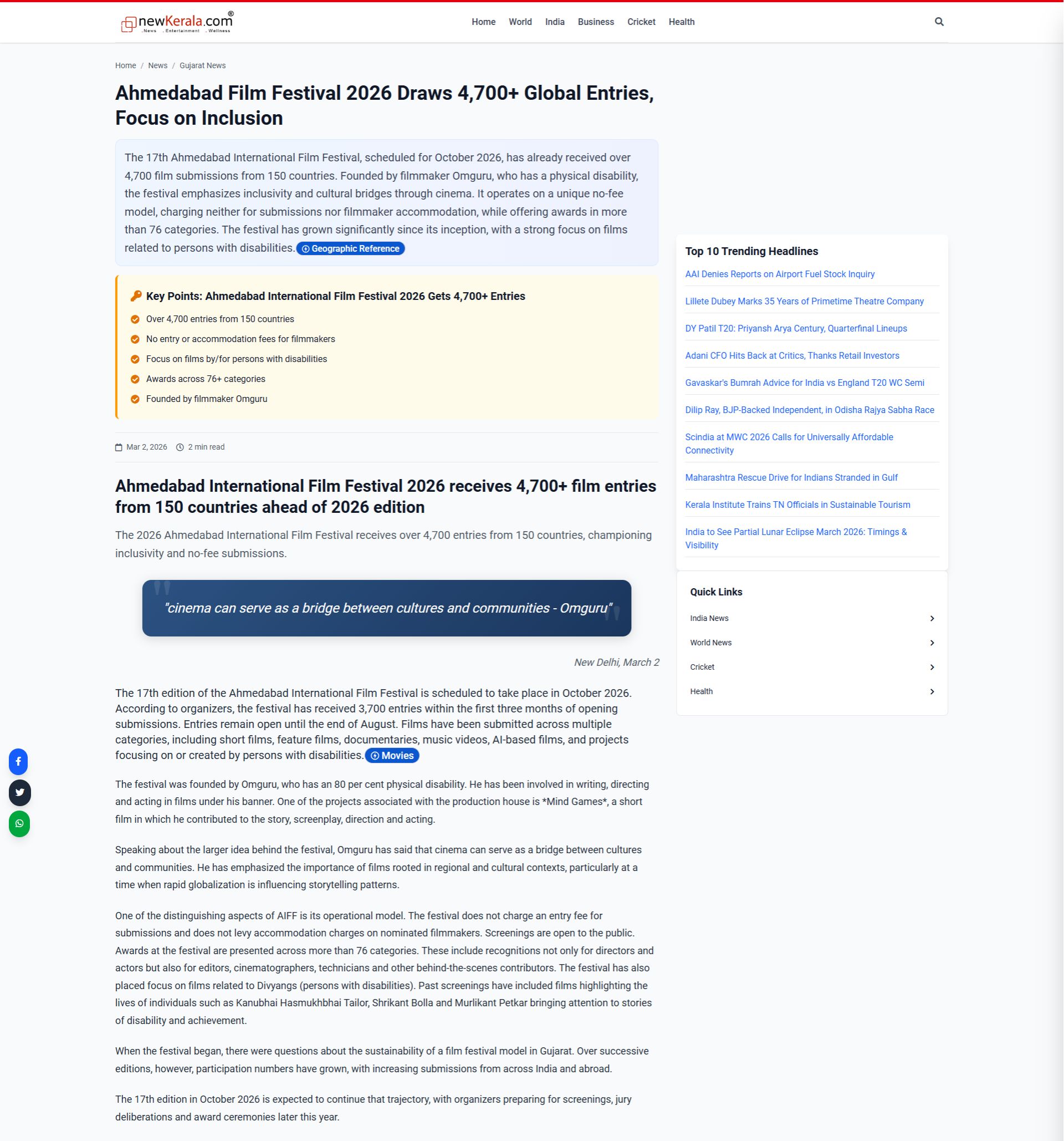 Ahmedabad Film Festival 2026 Draws 4,700+ Global Entries, Focus on Inclusion