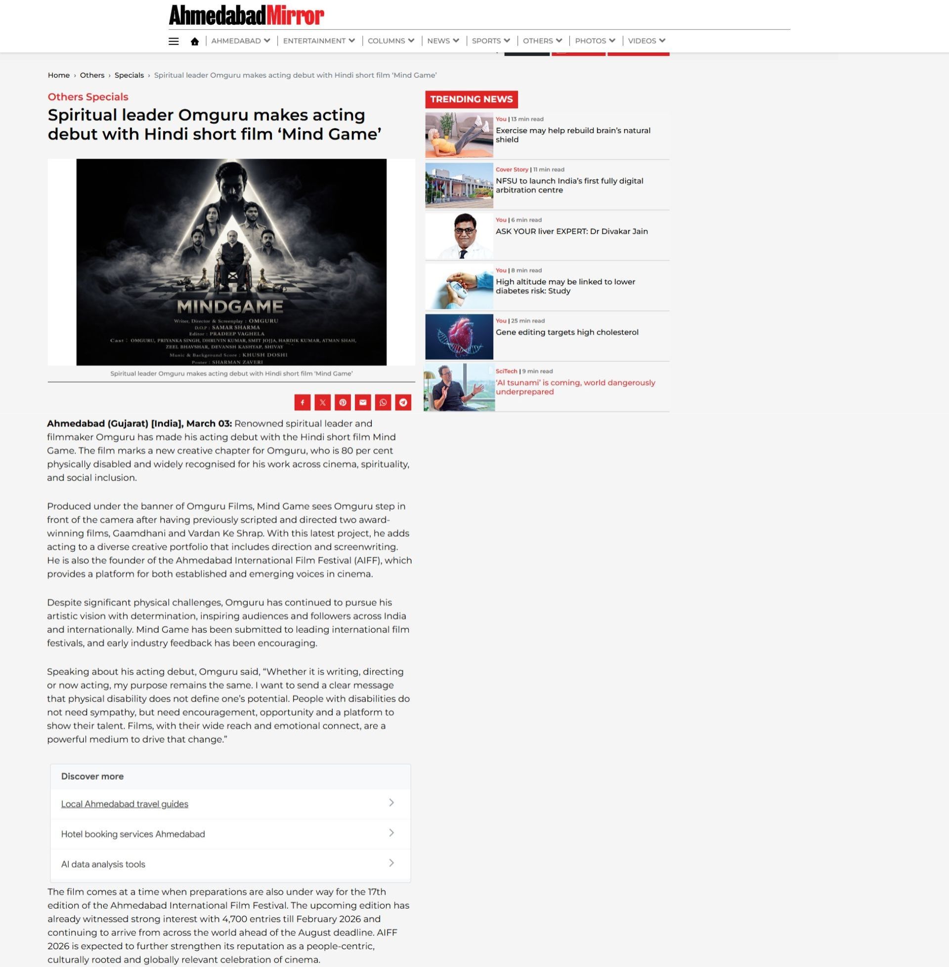 Spiritual leader Omguru makes acting debut with Hindi short film ‘Mind Game’